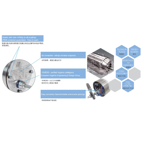 • Design: Weld-free pipe housing, NDE terminal box, easy to wash.